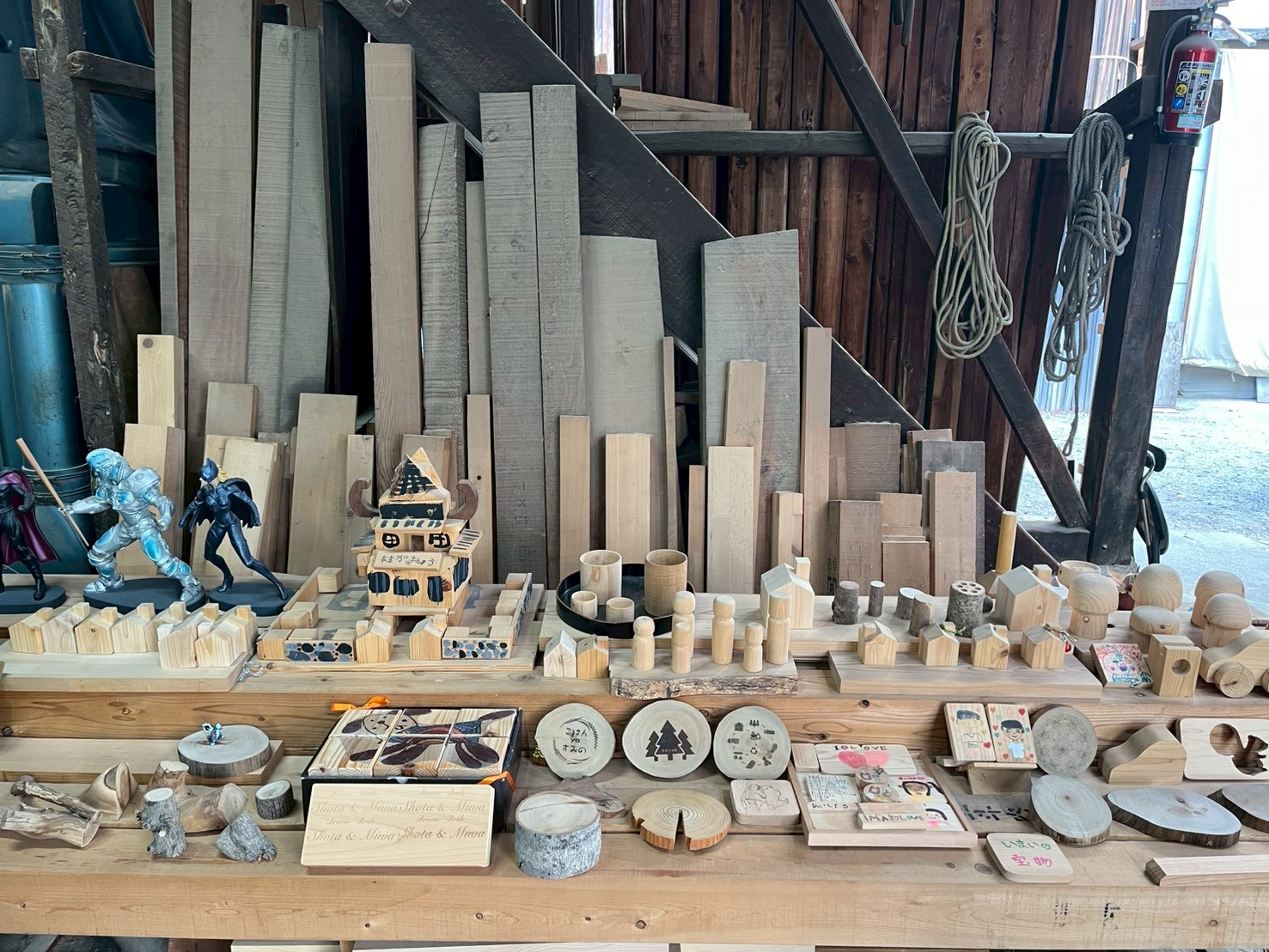 当社では、木材の廃棄を少しでも防ぐため、檜の積み木や、加工の際に生まれる木材を利用した消臭剤なども販売しています。また、同様に加工の際に生まれる端材を個数限定はありますが、お持ち帰りいただけます。お子様の夏休みの自由研究などにご利用ください。(5つまで)