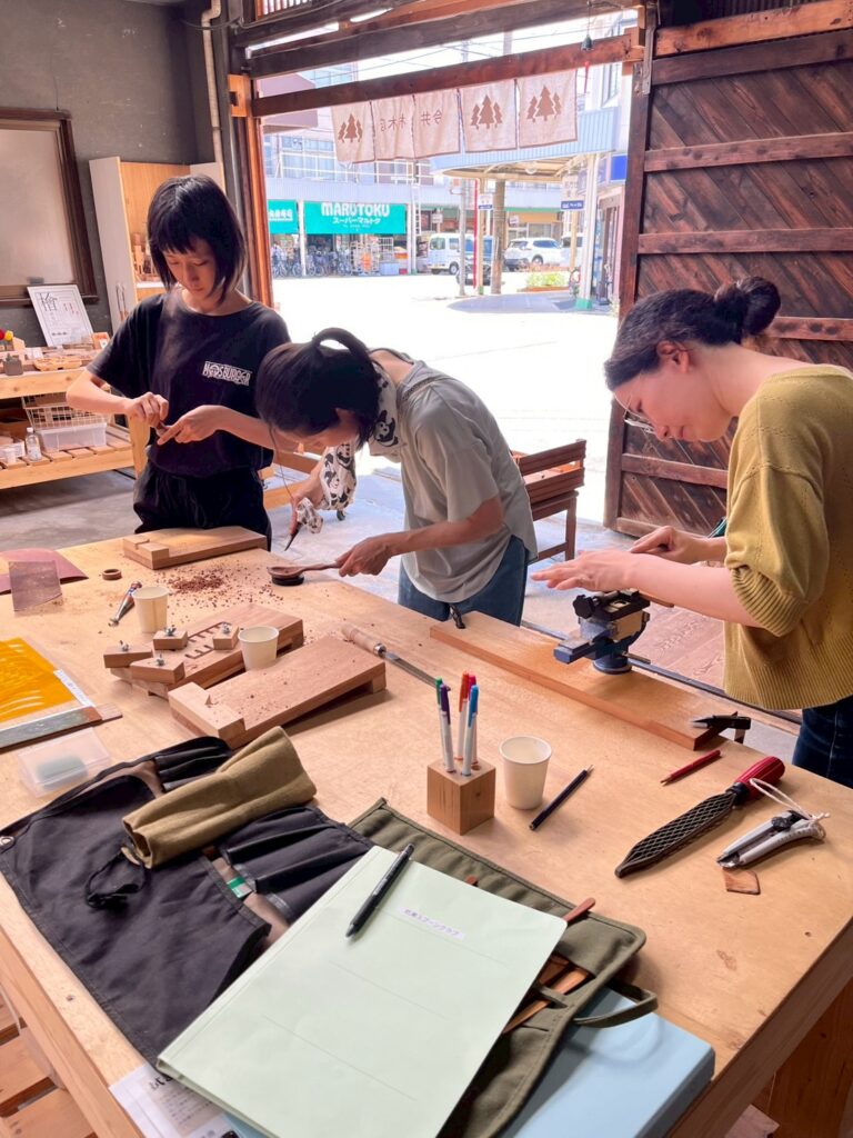 弊社隣の杭瀬公園とを行き来しながら端材を削って彫ってスプーンを作る活動もしています。